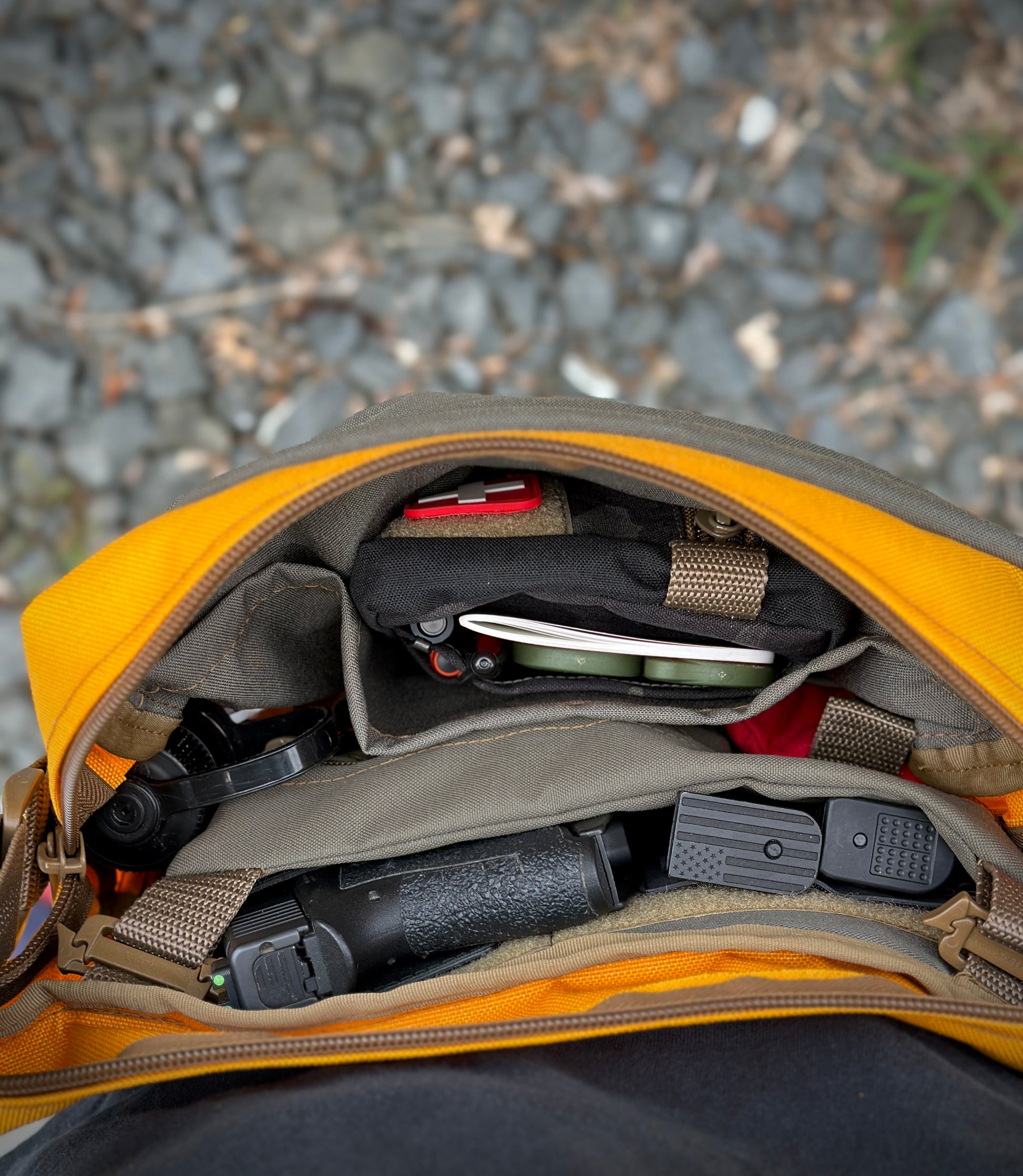 • Open Interior Pocket – Perfect for separating your notebook, journal, kindle, or wallet from your gear.