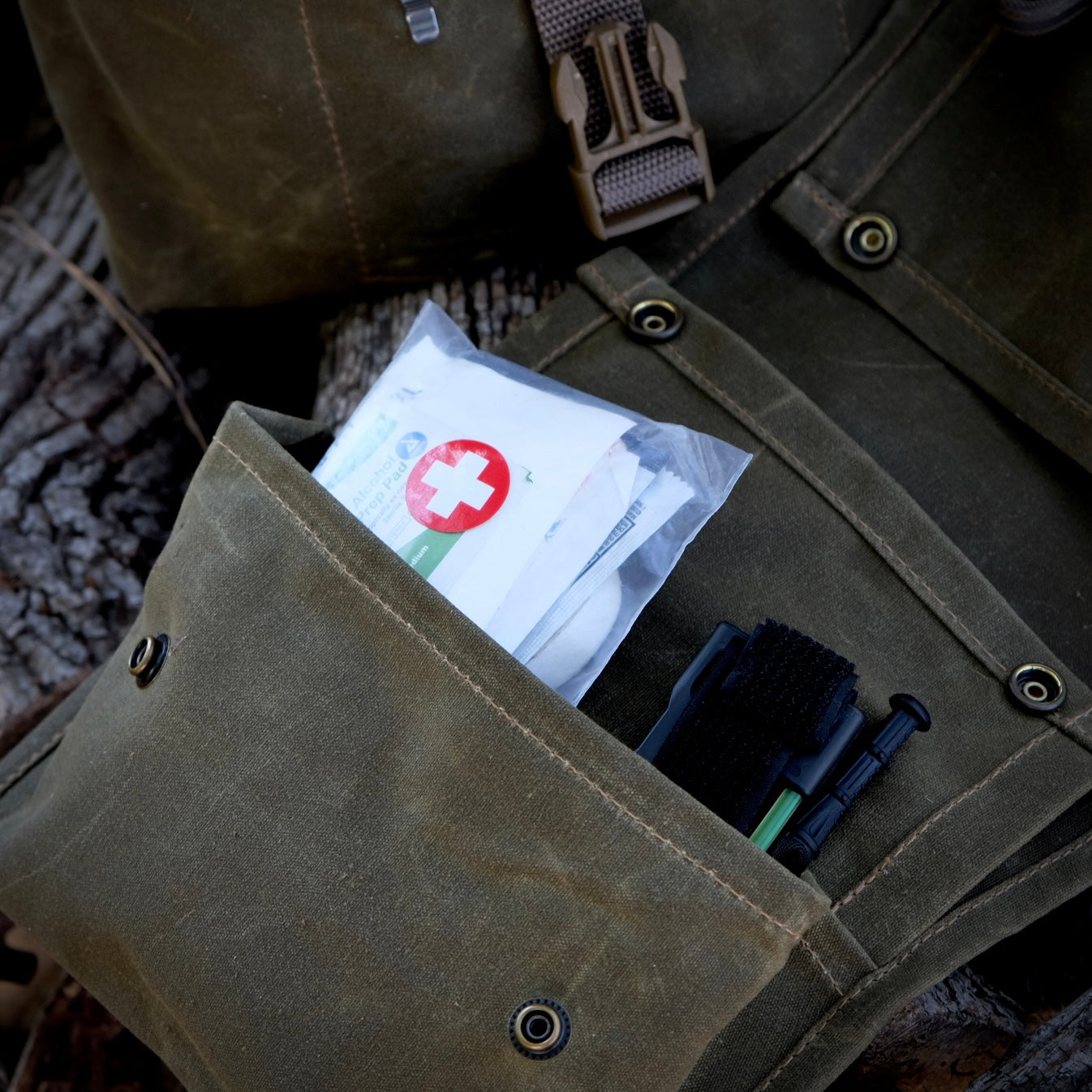 The Badger Claw Survival Kit Roll-Up offers two interior pockets with snap closures.